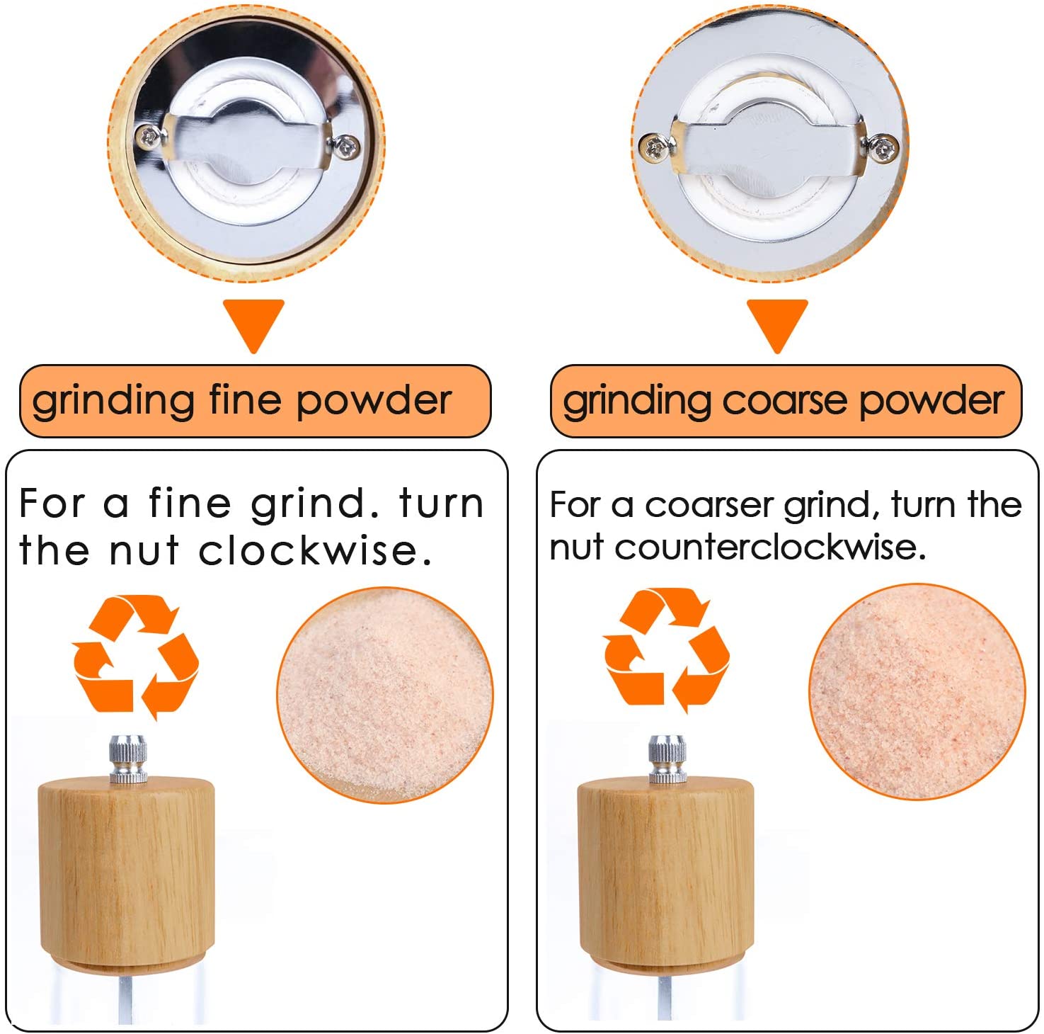 👉CUSTOMER SERVICE: All of our salt and pepper mills are testing 100% and rigorous inspection to ensure our customers receive high quality grinder mills. If you're not completely satisfied with these pepper and salt grinder set we'll give you a 100% refund or replacement.